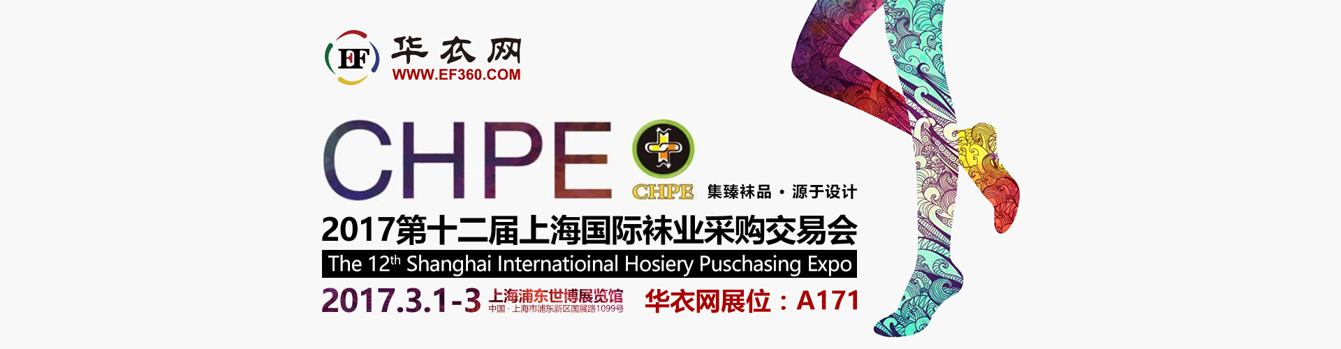 集臻襪品 · 源于設計2017第十二(er)屆上(shang)海國際(ji)襪業采購(gou)交易會(2017 CHPE)將于2017年3月1日-3日,與您相(xiang)約上(shang)海浦東·世博展覽館(國展路1099號)。