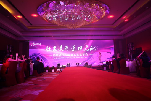 2015年,壯志凌云·榮耀起航婭茜內衣2016春夏新品品鑒會在杭州雷迪森鉑麗大酒店隆重舉行!當天來自各地的優秀代理商、加盟商們蒞臨現場,一起歡度此次盛會。