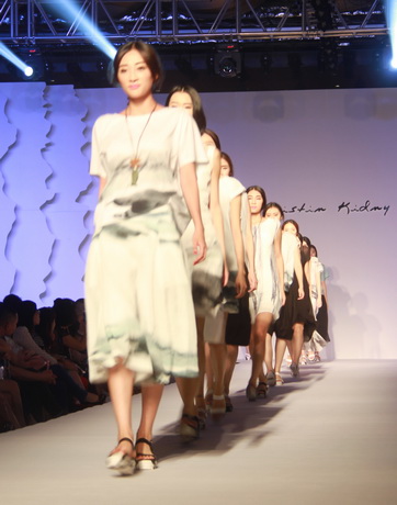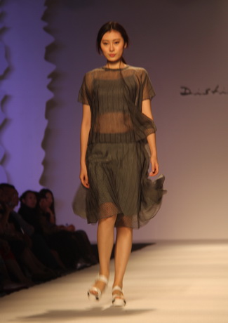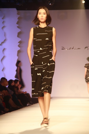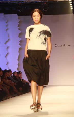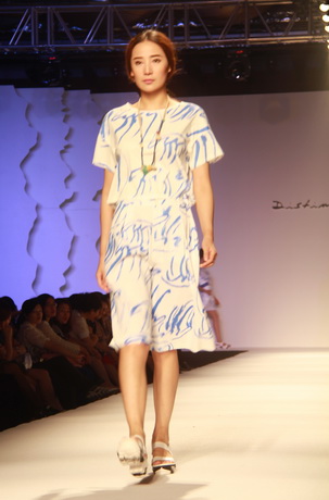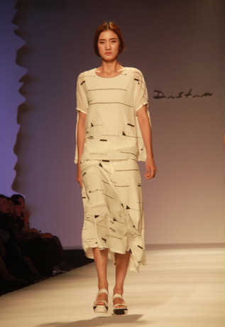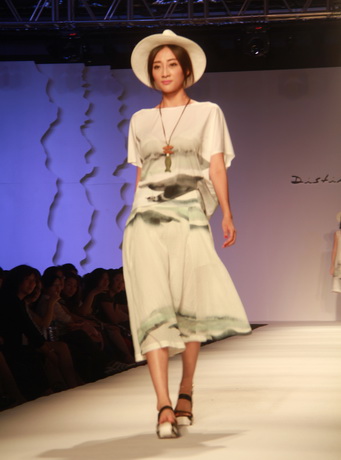 既然是藝術女裝,迪斯廷.凱的設計靈感自然和藝術不分家。就從此次發布會的幾大系列來說,都會系列的靈感源于楊正新的《群雀》和《竹》水墨系列作品及當代畫家吳冠中寫意山水作品的線條元素,設計出山水空靈和現代隨性兼具的系列作品;摩登系列則選用齊白石的《玉蘭》、門采爾的《房屋與樹叢》等作品,以大氣的演繹手法使原本平面的繪畫作品呈現出立體的幾何美感,使設計更加國際化;在精品系列中,以精為核,從寫意水墨國畫《云與雁》中汲取靈感,并將素雅的花色繪制于韓國進口花紗面料上,精致的呈現出高雅質美。