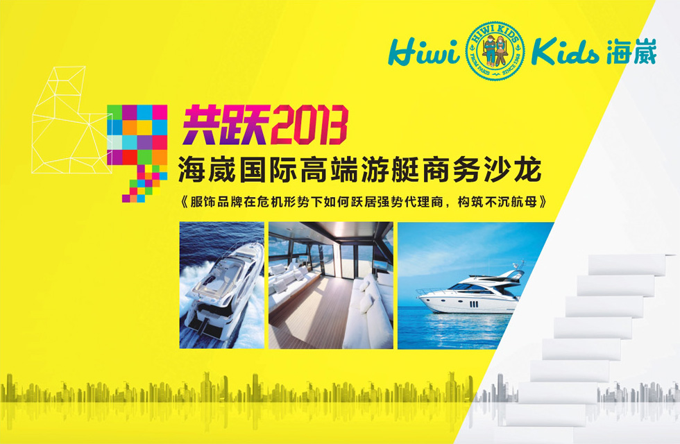 22日上(shang)午,由海(hai)(hai)崴國際(ji)品牌總經(jing)理李韓峰主(zhu)持的(de)(de)(de)海(hai)(hai)崴國際(ji)潮流(liu)童裝(zhuang)2013高端(duan)游艇商務沙龍暨《服飾品牌在(zai)危機形(xing)勢下(xia)如(ru)何躍居強(qiang)勢代理商,構筑不沉(chen)航母(mu)》課題(ti)發布會,在(zai)廈門(men)與臺(tai)灣金門(men)海(hai)(hai)域(yu)豪華游艇上(shang)舉行。經(jing)銷商們在(zai)悠然的(de)(de)(de)狀(zhuang)態下(xia),環廈金海(hai)(hai)域(yu),共同探討危機下(xia)服飾品牌經(jing)營者(zhe)如(ru)何運營童品產業(ye)的(de)(de)(de)方(fang)法論,并就應(ying)(ying)對市(shi)場面臨的(de)(de)(de)全新問題(ti)進一步研究與解(jie)決,深切感受到海(hai)(hai)崴創新生命力和應(ying)(ying)對市(shi)場新形(xing)勢審時度勢、務實共贏的(de)(de)(de)大企業(ye)智(zhi)者(zhe)風范