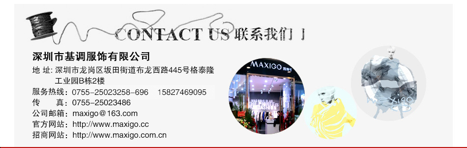 | 瑪詩可女裝擁有遍布于全國各地的買手、富有創新和豐富經驗的設計師團隊以及國外一線時尚品牌設計師團隊結合;無論從產品研發、新款上市速度均領先于同行,被業界譽為“流行時尚的快速復制者”。 超過40家以上加工生產戰略合作伙伴,產品質量和上貨速度擁有強大保證。 瑪詩可女裝提供確實可行的盈利合作模式,針對不同區域市場狀況及市場變化,制定各種不同的個性化營銷方案及貼近市場的政策扶持,被加盟商稱之為是“一個可以貼近市場先利他再利己的公司”。 瑪詩可女裝擁有在同行中處于領先實力的培訓團隊,為終端店鋪銷售提供充分而有全面的市場銷售分析與指導,讓您贏在終端,贏在起跑線上。 MAXIGO瑪詩可女裝正在打造的服裝商學院,將為您提供學習和提升的機會,致力于把您變成教導型企業家,未來還將為您源源不斷地培養和輸送服裝各崗位優秀人才。 |