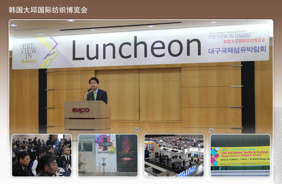 2015年3月11-13日,華衣網應應韓國纖維產業聯合會和AVING NEWS的邀請,出席了在韓國大邱舉辦的2015韓國國際紡織展覽會,針對展會本身及各大參展品牌進行報道。除此之外,華衣網記者還深入展會,對展團的參展情況進行了詳細報道。本屆展會報道以圖文專題形式通過網絡發布,敬請關注!
