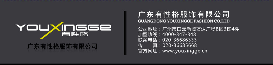 | 廣東有性格服飾公司是一家專注于時尚休閑服飾研發、生產、銷售為一體的專業化企業,旗下自主品牌“有性格”服飾成立于2010年,奉行“我時尚,因為我有性格”的品牌理念,現已布局華南,致力發展全國。 “有性格”品牌實行“價格實惠超值,款式快速更新”的產品策略,主打時尚、運動、休閑三大系列,每季度推出上千款產品,為商家和消費者提供獨特的貨品和專業的服務。 有性格時尚男裝實行“誠信經營,持續合作,追求卓越”,“與顧客心貼心”是公司的經營及服務理念。憑著良好的信譽和強有力的經營及服務理念,“有性格品牌男裝一經問世,便迅速地在華南地區完成戰略性布局,得到了商家和消費者的廣泛認可與稱譽! 有性格品牌男裝公司秉承“創新•博愛•和諧•共贏”的企業精神,“每天都是新起點,每天都有新收獲”的管理理念,注重發展策略,不斷吸納人才,并擁有了一支團結、高效、不斷創新的優秀團隊! 公司一直以“永遠的朋友,永遠的伙伴”的合作理念,“質量第一、客戶至上、誠實守信”的服務宗旨,做為企業發展的第一動力,公司隨時恭候諸位賓朋好友光臨我司指導工作,技術交流,洽談業務,共創輝煌! |
